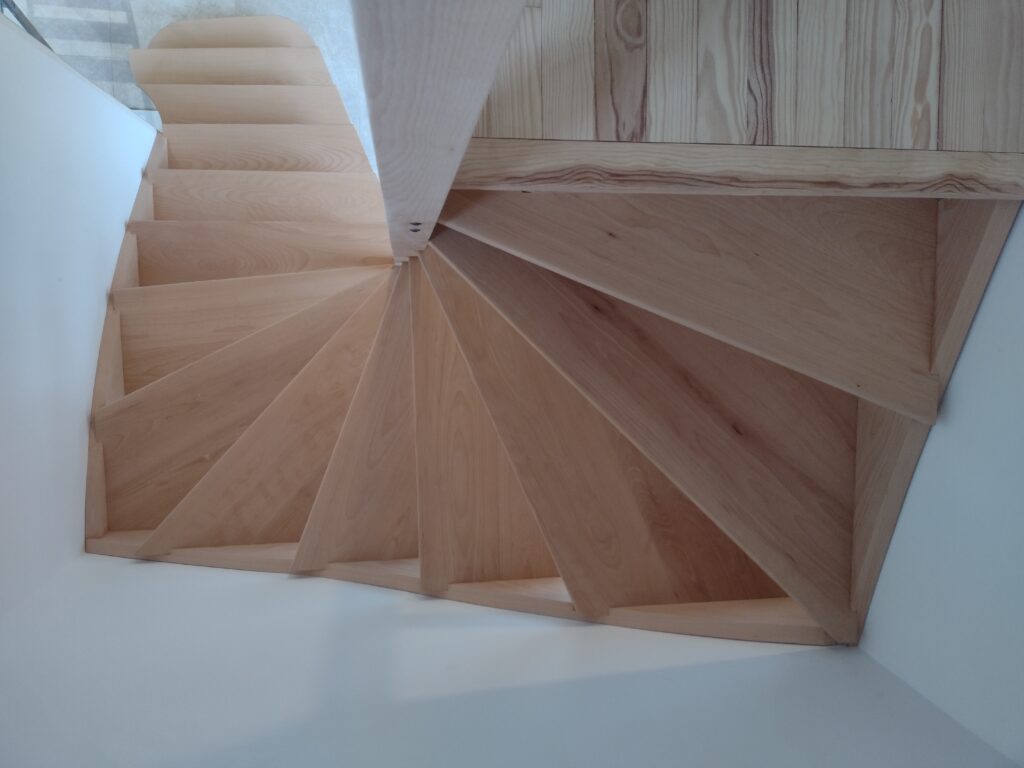 - Escalier double quart tournant en hêtre